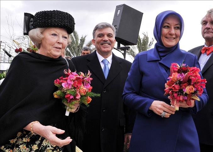 ''Seyahatimizin son günü Amsterdam'dan Maastricht kentine tüm heyetimiz ile birlikte Kraliyet treni ile gittik. İstasyonda Kraliçe bizi böyle karşıladı. İstasyondan hep beraber uluslararası çiçek fuarına gittik. Bu bizim için önemli. Çünkü 2016 yılında bu fuar Antalya'da yapılacak ve milyonlarca insan gelecek. Çiçek fuarının açılışını hep beraber yaptık.''
