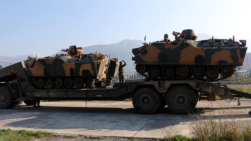 Türk Silahlı Kuvvetleri (TSK) tarafından Suriye sınırındaki birliklere takviye amacıyla gönderilen komando birlikleri ve zırhlı personel taşıyıcılar Hatay'a geldi.