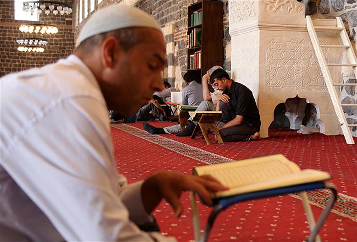 Sıcaklığın 40 dereceye yaklaştığı Batman'da da oruç tutan vatandaşlar Çarşı Mahallesi'ndeki Ulu Cami'de Kuran'ı Kerim okuyup, namaz kıldı.
