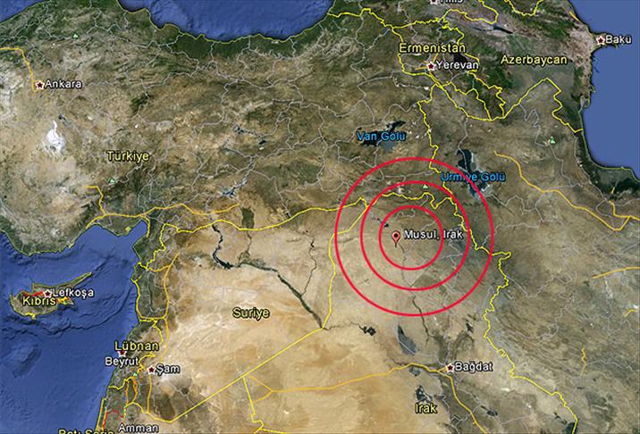 Boğaziçi Üniversitesi Kandilli Rasathanesi ve Deprem Araştırma Enstitüsü'nden alınan bilgiye göre, saat 16.57'de Musul Kenti yakınlarında 5.2 büyüklüğünde deprem kaydedildi.