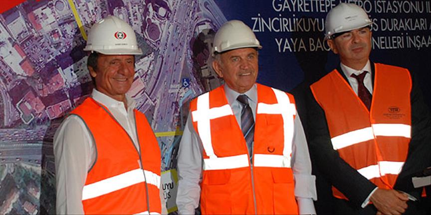 İstanbul Büyükşehir Belediye Başkanı Kadir Topbaş, Zorlu Holding Yönetim Kurulu Başkanı Ahmet Zorlu ile Gayrettepe metro istasyonu ile Zincirlikuyu metrobüs durakları arası yaya bağlantı tünelinde incelemelerde bulundu.