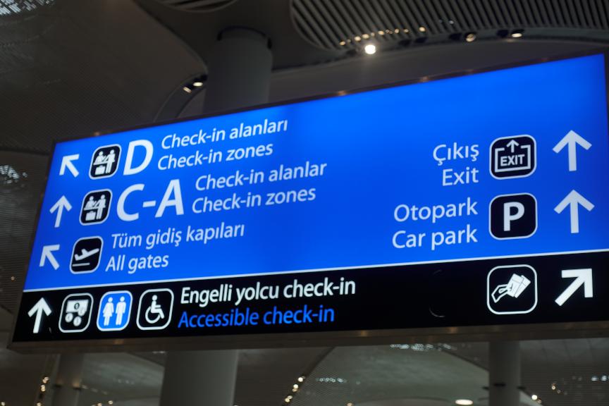 Havalimanındaki yönlendirme levhaları engelli yolcular için özel olarak tasarlandı. Görme engelliler için Braille alfabesi yerleştirilen yönlendirme tabelalarına, zihinsel özürlülere yönelik anlaşılabilir sembol/piktogramlar konuldu.