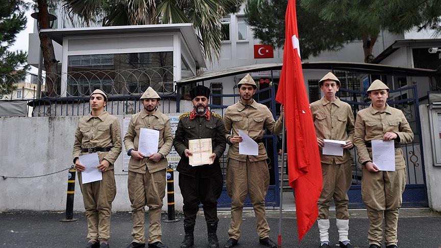 "Biz Tokat 15’li torunlarıyız, 1915’te dedelerimiz gönüllü olarak Çanakkale’ye bu vatanı korumak için gitti. Biz de onların torunları olarak bugün Türkiyemize saldıran dış güçlere karşı, Cumhurbaşkanımız Recep Tayyip Erdoğan’a destek amacıyla Büyükçekmece Askerlik Şubesine geldik ve arkadaşlarımızla beraber dilekçelerimizi yazdık. Gönüllü olarak Başkomutanımız Recep Tayyip Erdoğan’ın bize emredeceği her cepheye gitmeye hazırız."