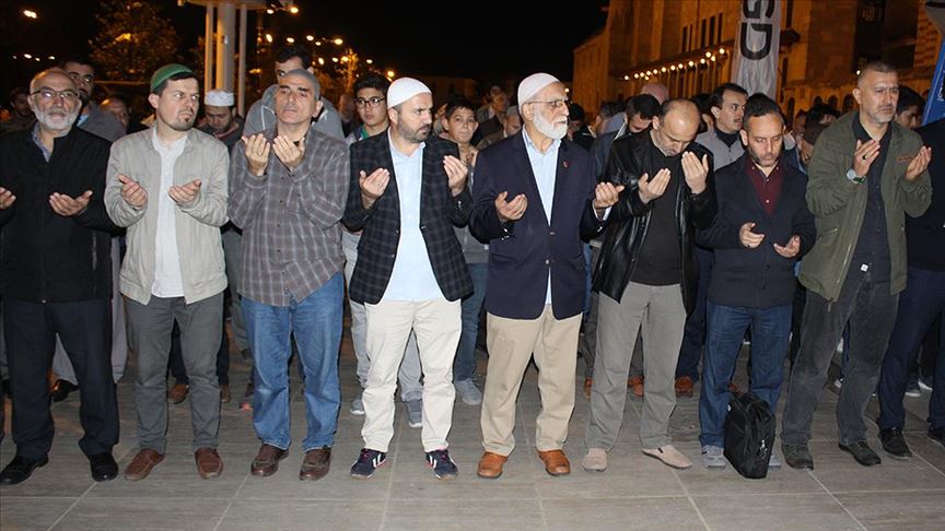 Anadolu Gençlik Derneği üyeleri, Keşmir'de yaşananları protesto etmek amacıyla akşam namazı sonrası Fatih Camisi avlusunda toplandı.