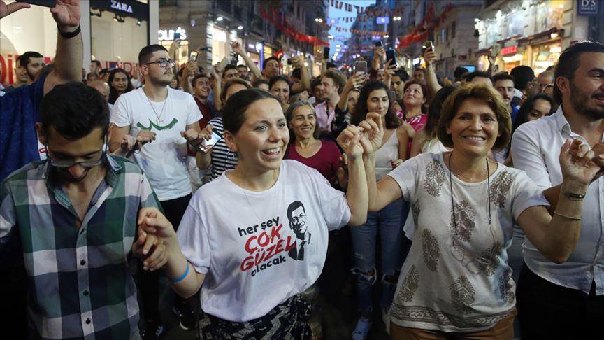 Resmi olmayan sonuçlara göre İstanbul Büyükşehir Belediye Başkanlığını Millet İttifakı'nın CHP Adayı Ekrem İmamoğlu'nun kazanmasının ardından bazı vatandaşlar sokaklarda kutlamalara katıldı.