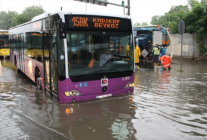 İstanbul'un Anadolu Yakası'nda etkili olan sağanak, su baskınlarına yol açtı.