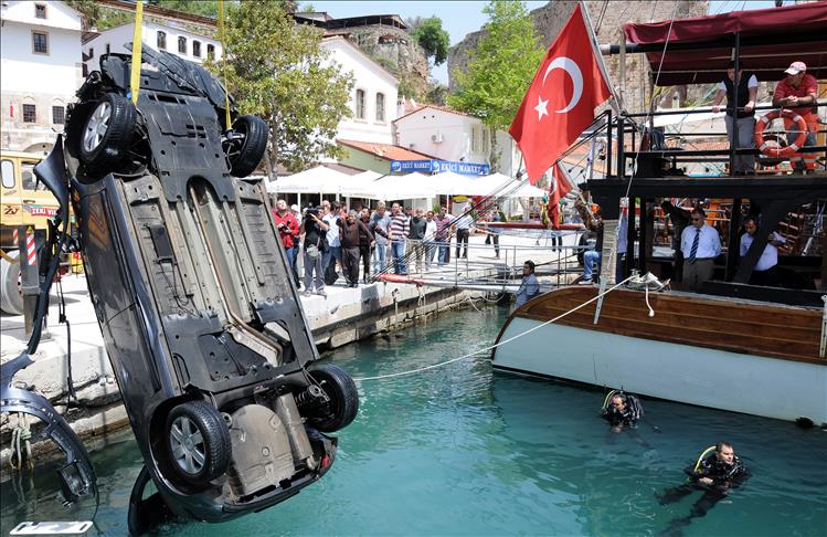 Öte yandan Öztimur'un 35 CER 75 plakalı otomobili de vinç yardımıyla yaklaşık yarım saatlik çalışmanın ardından denizden çıkarıldı.
