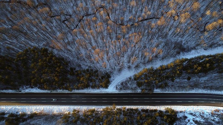 Trakya'nın Karadeniz kıyılarındaki meşe ve çam ağaçlarından oluşan Istranca ormanları ile bölgedeki Balkan köyleri de kar yağışının ardından beyaza büründü.