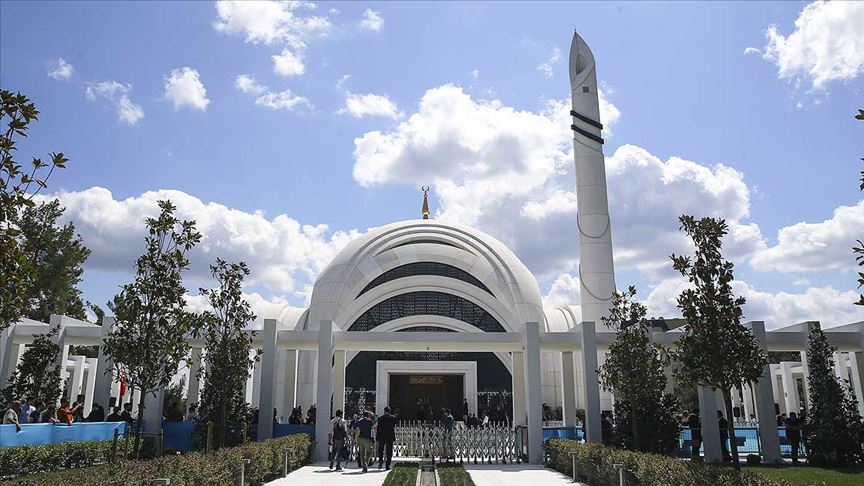 T planlı ve betonarme olarak inşa edilen caminin, 26 metre çapında ve 21 metre yüksekliğinde merkezi kubbeye sahip olduğunu anlatan Erdoğan, şunları kaydetti: