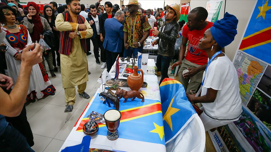 Nijerya’dan Filistin’e, Senegal’den Kazakistan’a birçok ülkeden gelen öğrenciler tanıtımlarını da yöresel kıyafetleriyle yaptı.