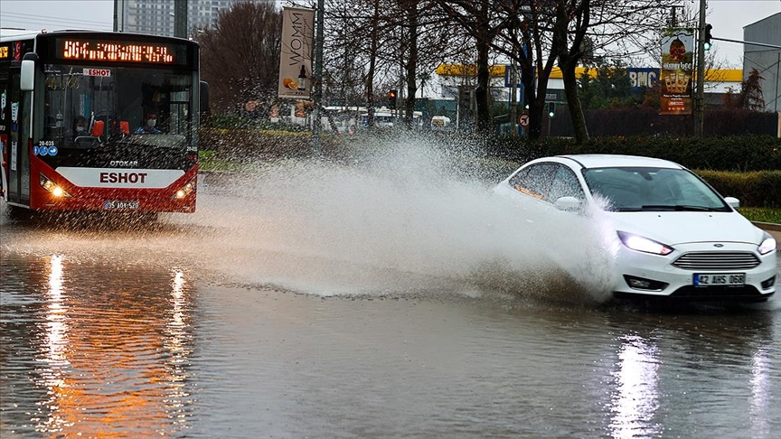 Karabağlar, Karşıyaka ve Bornova ilçelerinde yollarda oluşan su birikintileri, sürücülere zor anlar yaşattı.