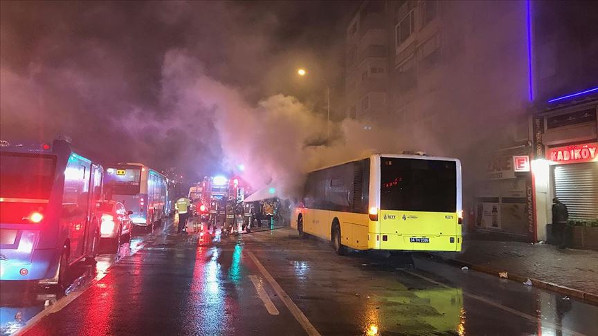 Kadıköy'de seyir halindeki İETT otobüsünde çıkan yangında, otobüs kullanılamaz hale geldi. Ekipler olay yerinde çalışma yaptı. ( Hasan Hüseyin Kulaoğlu - Anadolu Ajansı )