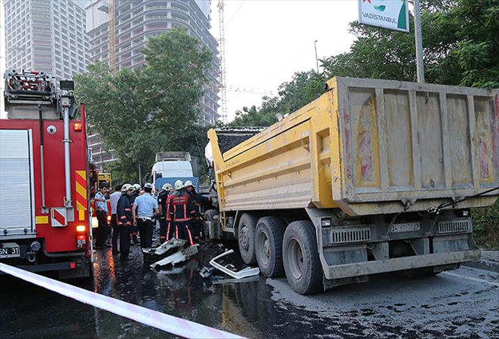 Kağıthane'de demir yüklü tıra çarpan hafriyat kamyonunun sürücüsü hayatını kaybetti.