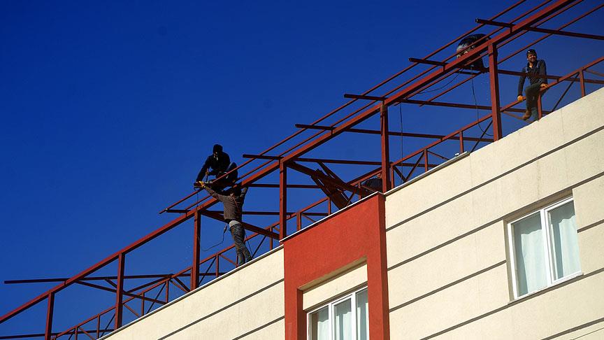 Çatı tamiri yapan 4 işçinin metrelerce yükseklikte rahat hareketlerle çalışması dikkati çekti. İşçilerin, güvenlik tedbiri almadan çatının en uç kısımlarına kadar geldikleri gözlendi.