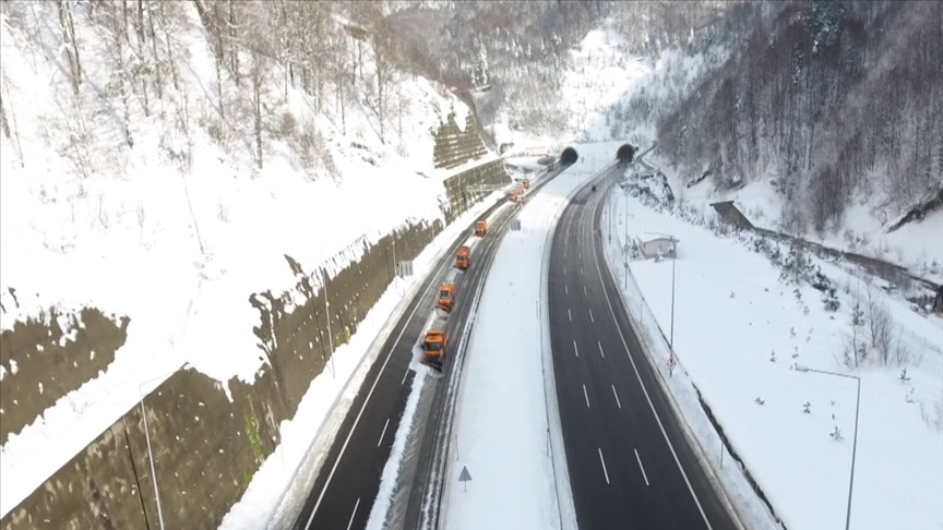 Karayolları ekipleri, "İstanbul'un Anadolu'ya açılan kapısı" olan Anadolu Otoyolu'nun Bolu Dağı Tüneli kesiminde yolun ulaşıma kapanmaması için karla mücadele çalışması yürütüyor.