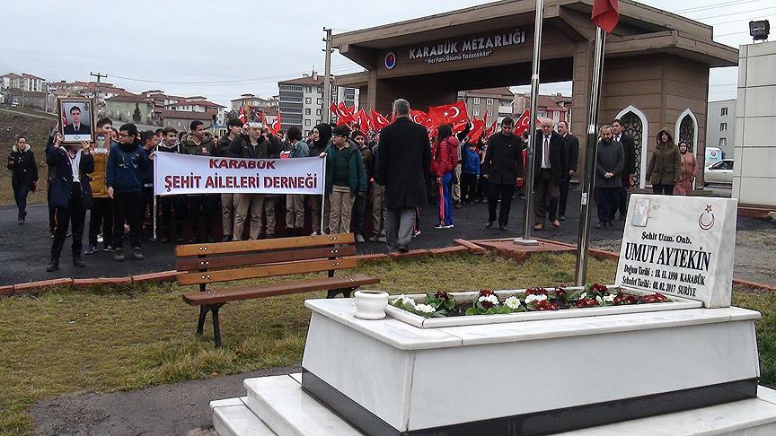 Karabük'te, Türk Silahlı Kuvvetleri (TSK) tarafından Suriye'nin El Bab bölgesinde yürütülen Fırat Kalkanı Harekatı'nda şehit olan İstihkam Uzman Onbaşı Umut Aytekin'i anma yürüyüşü düzenlendi.