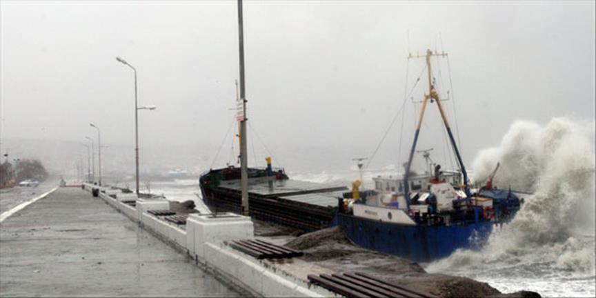 Karadeniz'deki şiddetli fırtına, sahil kesimlerinde hayatı olumsuz etkiliyor. İki gemi karaya oturdu.***