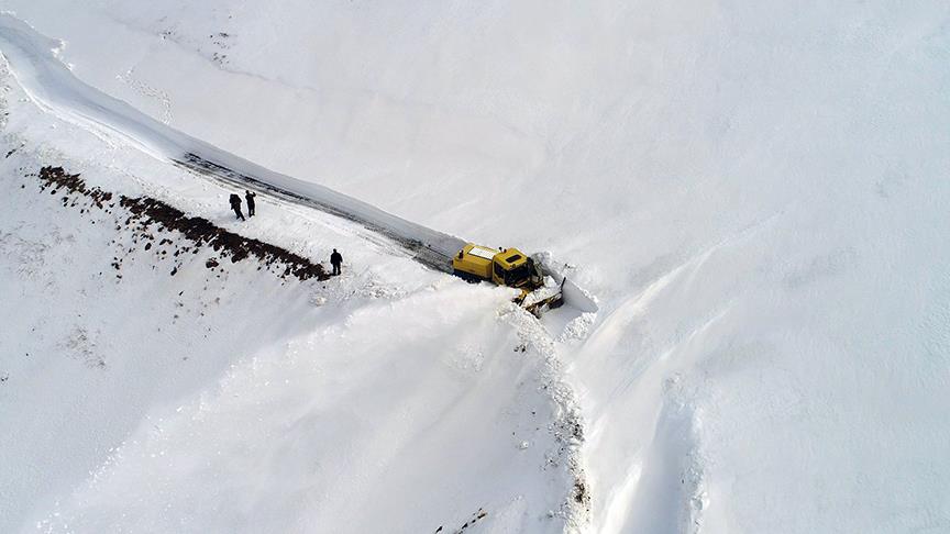 Karın kalınlığı yer yer 3 metreyi bulurken ekiplerce sürdürülen karla mücadele havadan görüntülendi.