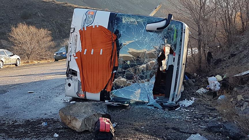 Kars'ta, bir yolcu otobüsünün devrilmesi sonucu ilk belirlemelere göre 30 kişi yaralandı.