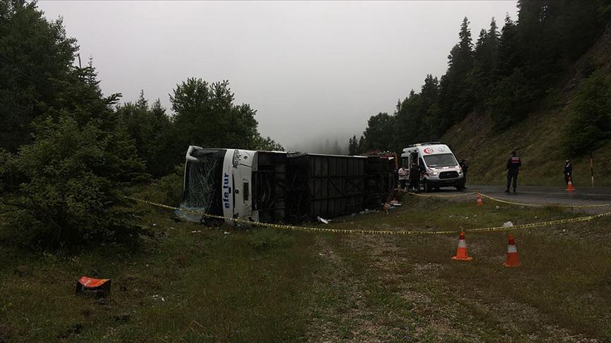 Kastamonu'nun Küre ilçesinde yolcu otobüsünün devrilmesi sonucu 2'si çocuk 14 kişi yaralandı.