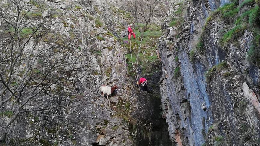 Kayalıklarda mahsur kalan keçiyi AKUT kurtardı