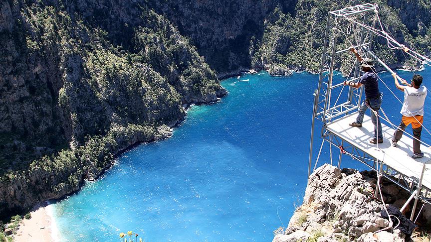 İki gün sürecek etkinlikte sporcular, 330 metre yükseklikte kurulan platformdan Kelebekler Vadisi'ne atlayış gerçekleştirecek.