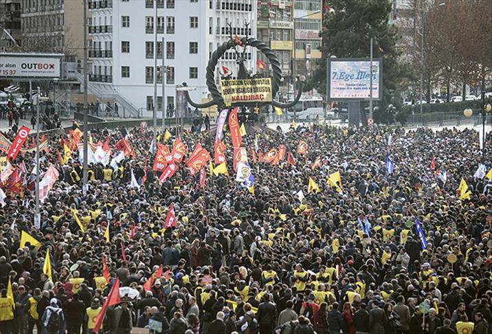 Türkiye Devrimci İşçi Sendikaları Konfederasyonu (DİSK) ve KESK'in çağrısı üzerine Celal Bayar Bulvarında toplanıp buradan Abdi İpekçi Parkı'na yürüyen bir grup sendika üyesi, 2015 yılı Bütçe Kanun Tasarısı'nı protesto etmek amacıyla mitingi" düzenledi.