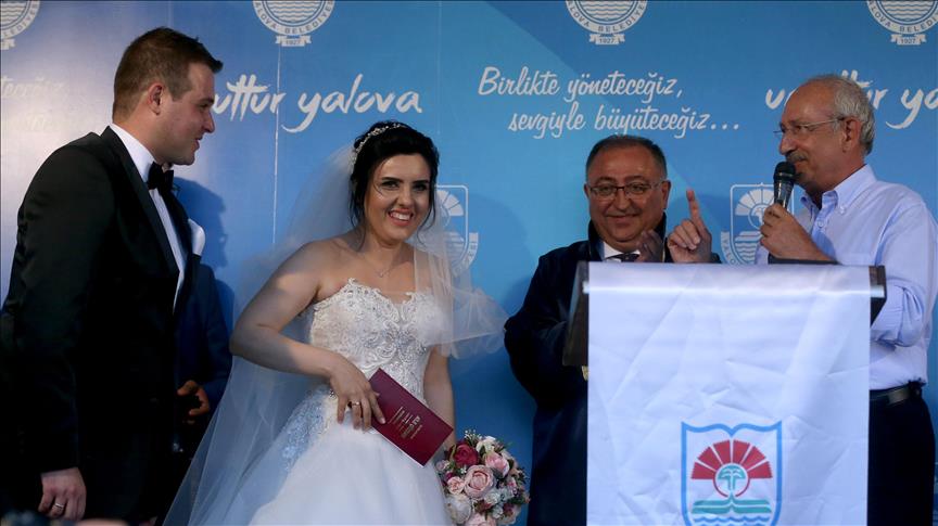 Yalova Belediye Başkanı Vefa Salman, Murat Erinç ve Şeyda Nur Aslan çiftinin nikahını kıyarken, Kılıçdaroğlu da gençleri tebrik etti.