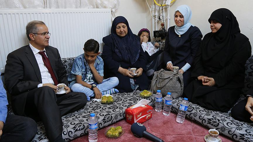 Kilis Valisi Süleyman Tapsız, beraberinde eşi ve çocuklarıyla, düşen roket mermileri nedeniyle 5 yaşındaki çocukları Mert'i kaybeden Mevlide ve İbrahim Özkan çiftti ile 3 çocuğunu kaybeden Suriyeli Fatma Cüneyd'i ziyaret etti.