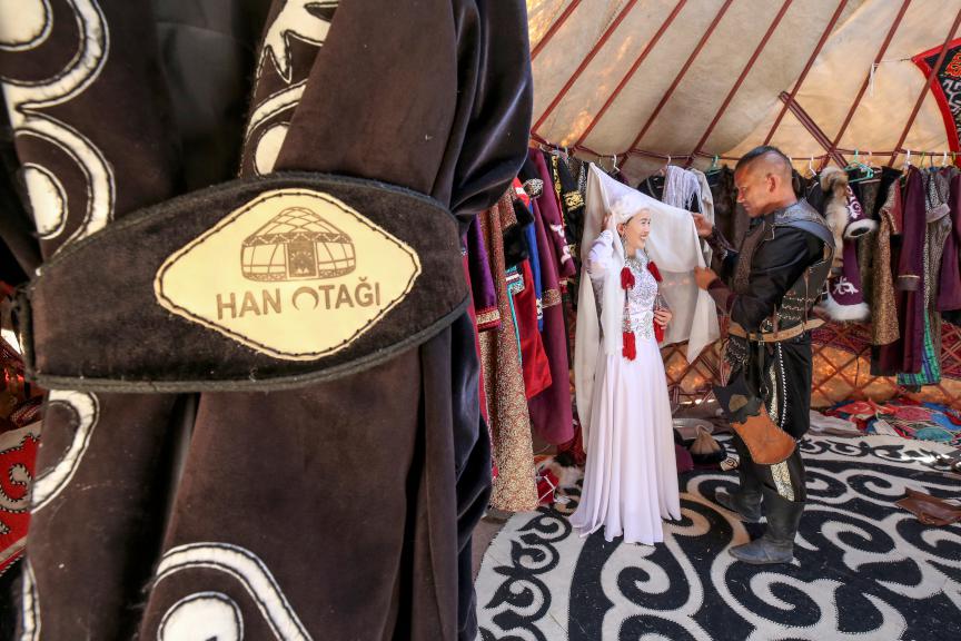 Mahallede "han otağı" kuran Kenan ve Ahmet Aytaç kardeşler, burada ağırladıkları ziyaretçilerine kültürlerini tanıtıyor, geleneksel kıyafetler giyerek fotoğraf çekme imkanı sunuyor ve yöresel yemek ikramında bulunuyor.