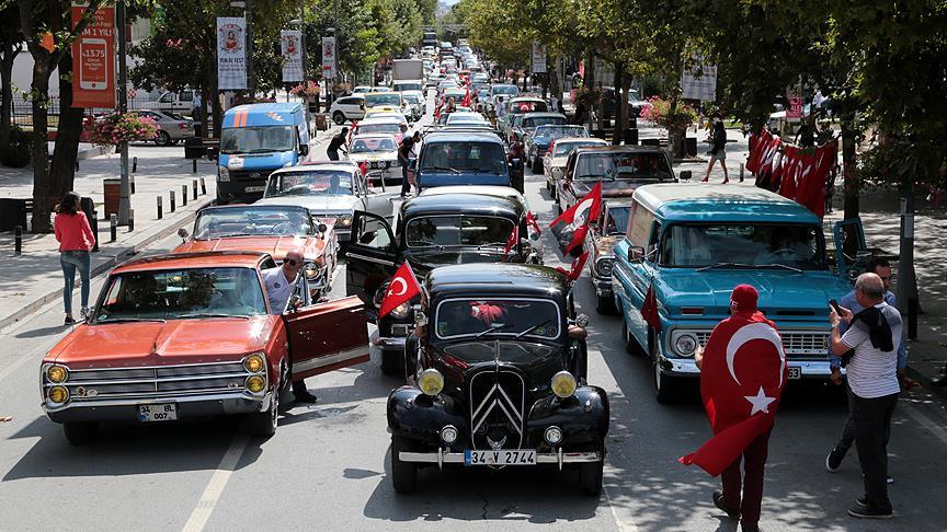 Milli birlik ve beraberliğe, toplumsal barışa katkı sunmak amacıyla Türk bayraklarıyla süslenmiş yaklaşık 100 klasik araç, "30 Ağustos Zafer Konvoyu"nda bir araya geldi.