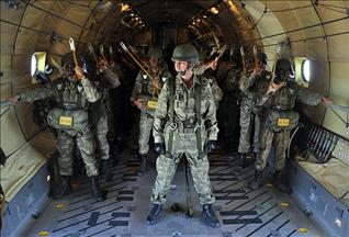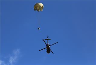 Dün gece hava indirme ile başlayan tatbikatın bugünkü bölümünde, C-130 ve C-160 nakliye uçaklarından 120 paraşütçü komando, bölgeye indirme yaptı. Tatbikat senaryosu gereği, paraşütle atlayan komandolar, temsili düşman muharebe merkezine operasyon düzenledi.