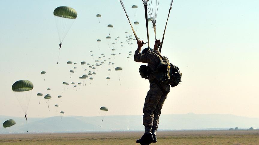 Kayseri'de konuşlu 1. Komando Tugay Komutanlığınca gerçekleştirilen "Erciyes-2016 Tabur Görev Kuvveti Müşterek Fiili Hava İndirme Tatbikatı"nda komandolar, hava indirme operasyonunu başarıyla gerçekleştirdi.