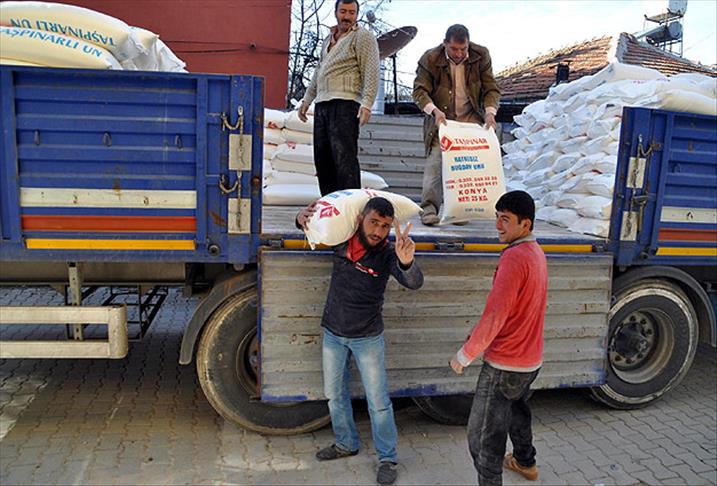 Suriye'de yaşanan olaylardan etkilenen Suriyeliler'e yardım için Türkiye'deki sivil toplum kuruluşlarının başlattığı ''Kış geldi... Suriye için bir ekmek, bir battaniye'' kampanyası kapsamında Verenel Derneği Konya Şubesi tarafından Suriye'nin Lazkiye kentine 27 ton un gönderildiği bildirildi.