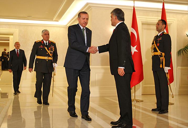 Gül, Anıtkabir'deki törenin ardından Çankaya Köşkü'ne geldi. Salonda yerini alan Gül, kutlamaları kabul etti.