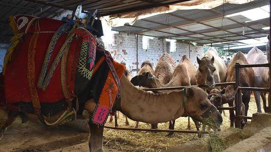 Kurban Bayramı'nda deve kesmek isteyen vatandaşlar, Aydın'ın İncirliova ilçesinde fiyatı 8 ile 13 bin lira arasında değişen hayvanlara gösteriyor.