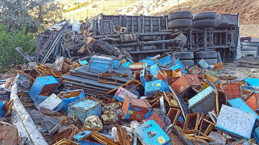 Malatya'nın Darende ilçesinde arı kovanı ve bal yüklü kamyonun devrilmesi sonucu 3 kişi öldü.