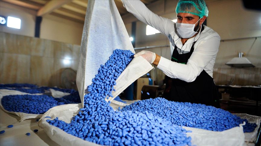 Dağlık alanda yetişen bademden şeker üretimi yaptıklarını vurgulayan Yertüm, badem şekerinin mavi rengini Lahor ağacının kökünden aldığına işaret ederek, "Ama rengi kaldıkça beyazlaşıyor. Eğer boya olsa her zaman mavi kalır." dedi.