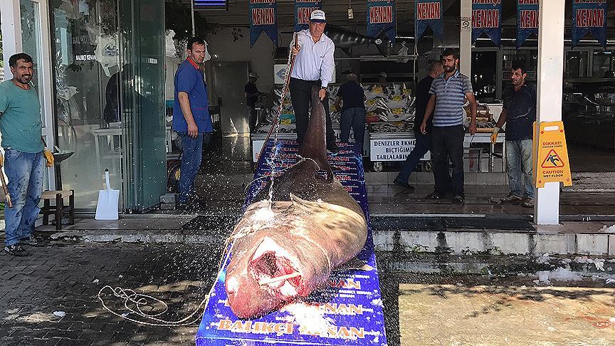 Kenan Balcı, av sezonu başladıktan bu yana yakalanan ilk köpek balığını sergilemeye başladıklarını belirterek, balığın oldukça büyük olduğunu söyledi.