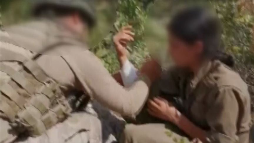 Görüntülere göre komandolar, çatışma sonrası arama-tarama faaliyetleri sırasında çalılıkların arasında kadın teröristin saklandığını tespit etti.