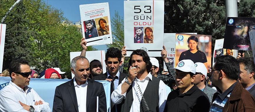 Açıklamaların ardından Medya-İş'e bağlı grup, ellerinde Suriye'de kaybolan gazeteciler Hamit Coşkun'la Adem Özköse'nin fotoğraflarını taşıyarak 1 Mayıs Emek ve Dayanışma Günü kutlamalarına katılmak üzere Tandoğan'a yürüdü.