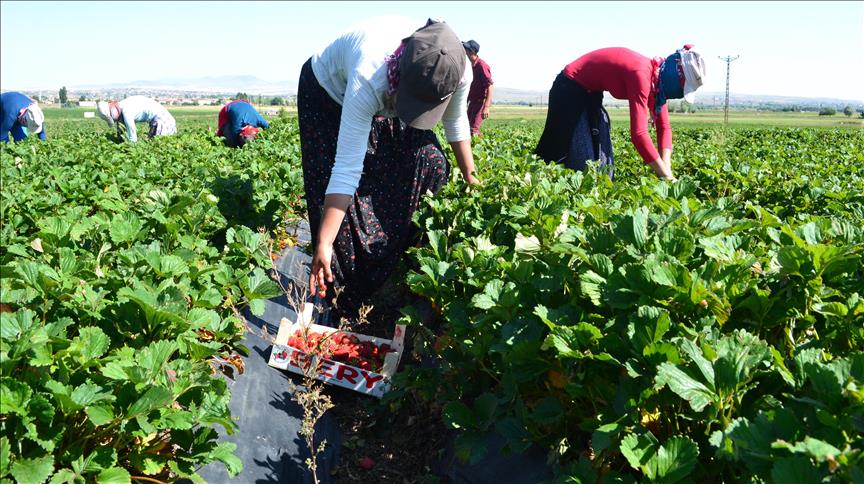 Çilek bahçesinde çalışan Fadime Kara ise "Bozcayurt köyünden gelip, akşama kadar burada çalışıyoruz. Çilek toplayarak ekmeğimizi kazanıyoruz. İşimiz çok güzel. Hem vatandaşlar için meyve topluyoruz hem de çocuklarımızın geleceği için emek veriyoruz." dedi.