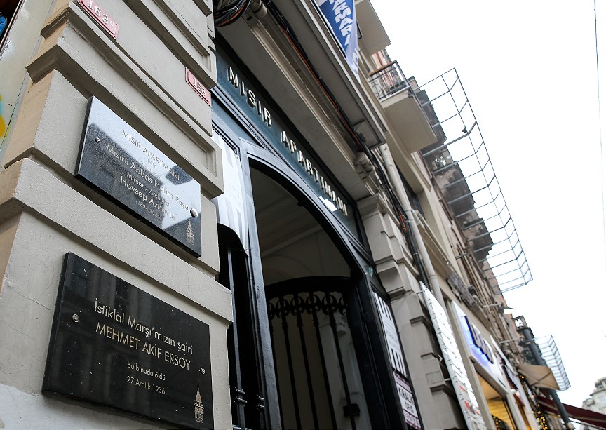 İstiklal Marşı'nın yazarı Mehmet Akif Ersoy'un ömrünün son günlerini geçirdiği ve vefat ettiği İstiklal Caddesi'ndeki Mısır Apartmanı'nın dördüncü katındaki daire, "Mehmet Akif Ersoy Müze Evi"ne dönüştürülecek.