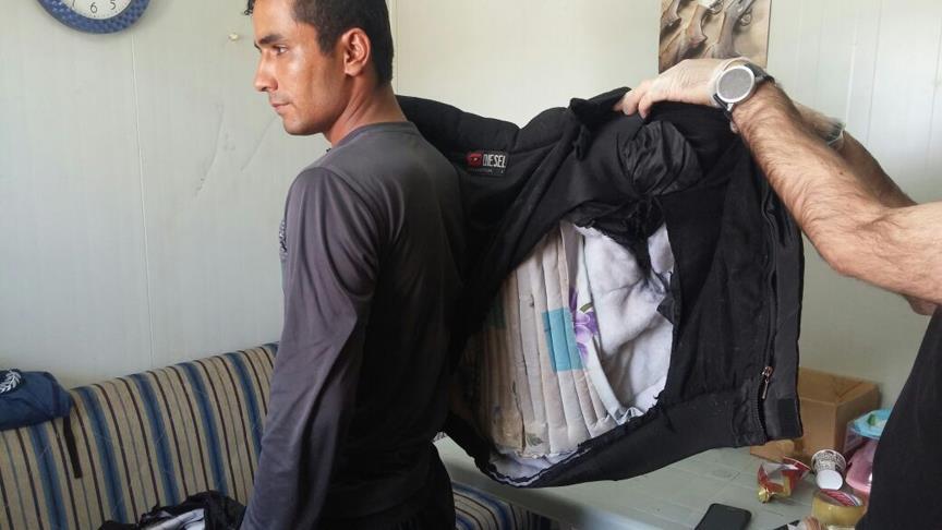 Otobüsteki yolculardan Afganistanlı H.H'nin üst aramasında, montunun astar kısmına gizlenmiş 902 gram esrar ele geçirildi.