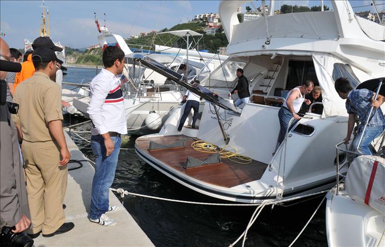 Ekipler tarafından kurtarılan 3 kişi, ''Ottoman'' adlı yatla, Sahil Güvenlik ekiplerinin eskortluğunda Güzelyalı Yat Limanı'na getirildi.