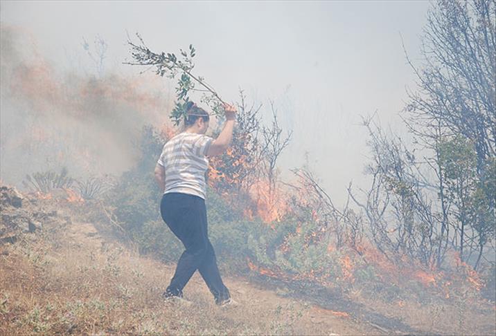 Arazinin sarp ve kayalık olması nedeniyle yangın güçlükle kontrol altına alınırken, soğutma çalışmaları başladı.