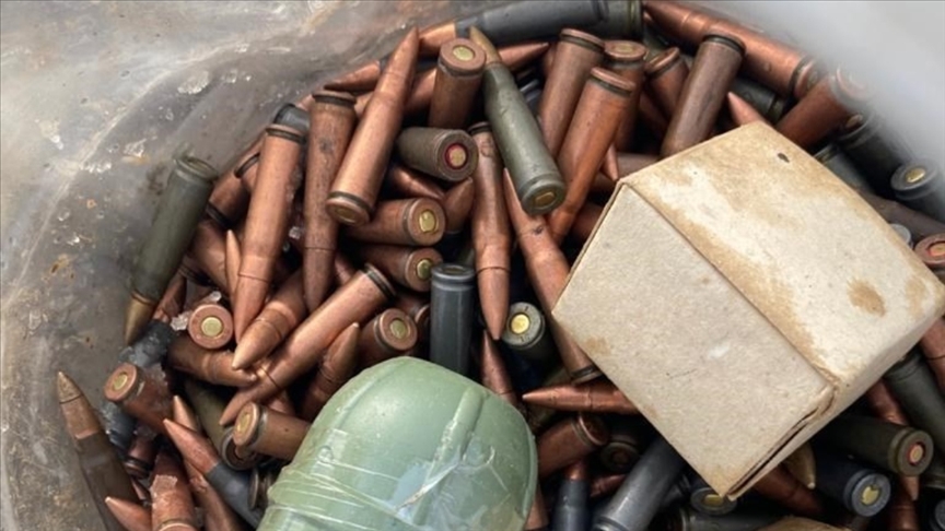 Operasyonda tespit edilen PKK'lı teröristlerce kullanılan depoda 2 el bombası ve 635 kalaşnikof mühimmatı bulundu.