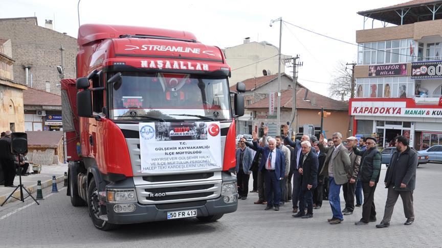 Nevşehir’in Gülşehir ilçesinden, Suriye'deki iç savaş nedeniyle sınır bölgelerine sığınan Halepliler için 25 ton un gönderildi.