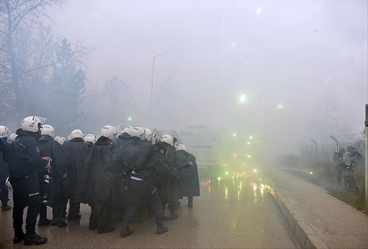 Pankart ve sloganlar eşliğinde A4 Kapısı'na doğru yürüyen protestocular, burada barikat oluşturan güvenlik güçleri tarafından durduruldu.