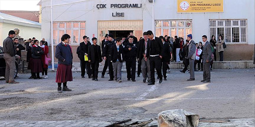 Bitlis İl Mili Eğitim Müdürü M. Emin Korkmaz, AA muhabirine yaptığı açıklamada, ''Ahlat'taki okulumuzda idare tarafından yangın tatbikatı düzenleniyor. Yaşanan bir aksaklık nedeniyle, tatbikatta 9 öğrenci yaralanıyor. Öğrencilerden 6'si ayakta tedavi edildi. Diğer öğrencilerden 1'i Batman'a 2'si de Bitlis Devlet Hastanelerine sevk edildi'' dedi.